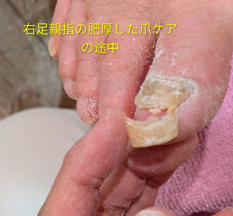 「足が痛いと言うお母様の足をみると爪が厚くなっていて靴の圧迫で痛みがあるようで、私(娘様)ではどうすることも出来ない」との事でした。
